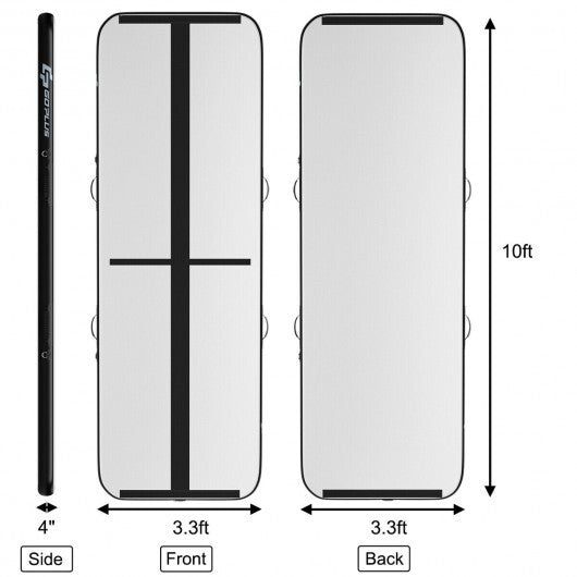 Transform any space into a personal gymnasium with the 10 Feet Inflatable Gymnastics Tumbling Mat in sleek black. Crafted from high-quality PVC, this mat is designed for both safety and convenience, making it the ultimate choice for fitness enthusiasts. Its generous dimensions of 10 ft in length and 3 ft in width provide ample space for all your tumbling, stretching, and workout needs, while a thickness of 4 inches ensures maximum comfort during use.