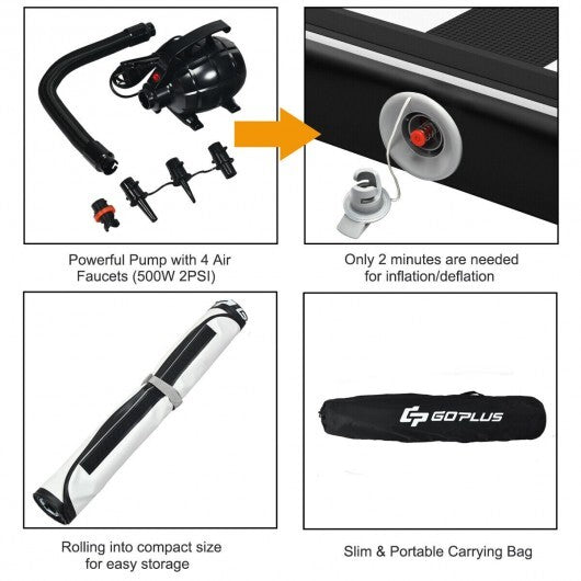 10 Feet Inflatable Gymnastics Tumbling Mat with Pump - Black PVC Fitness Mat for Home & Backyard Training, Portable, 4" Thick, Includes Electric Pump & Repair Kit